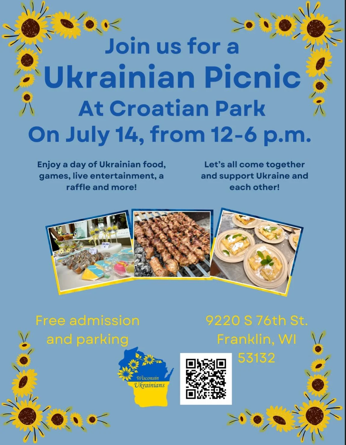 Wisconsin Ukrainians, Inc. is holding their annual Ukrainian picnic on Sunday, July 14th from 12 - 6 p.m. at the Croatian Park in Franklin, WI. This is a great opportunity to celebrate Ukrainian heritage and culture and connect with the local Ukrainian community!