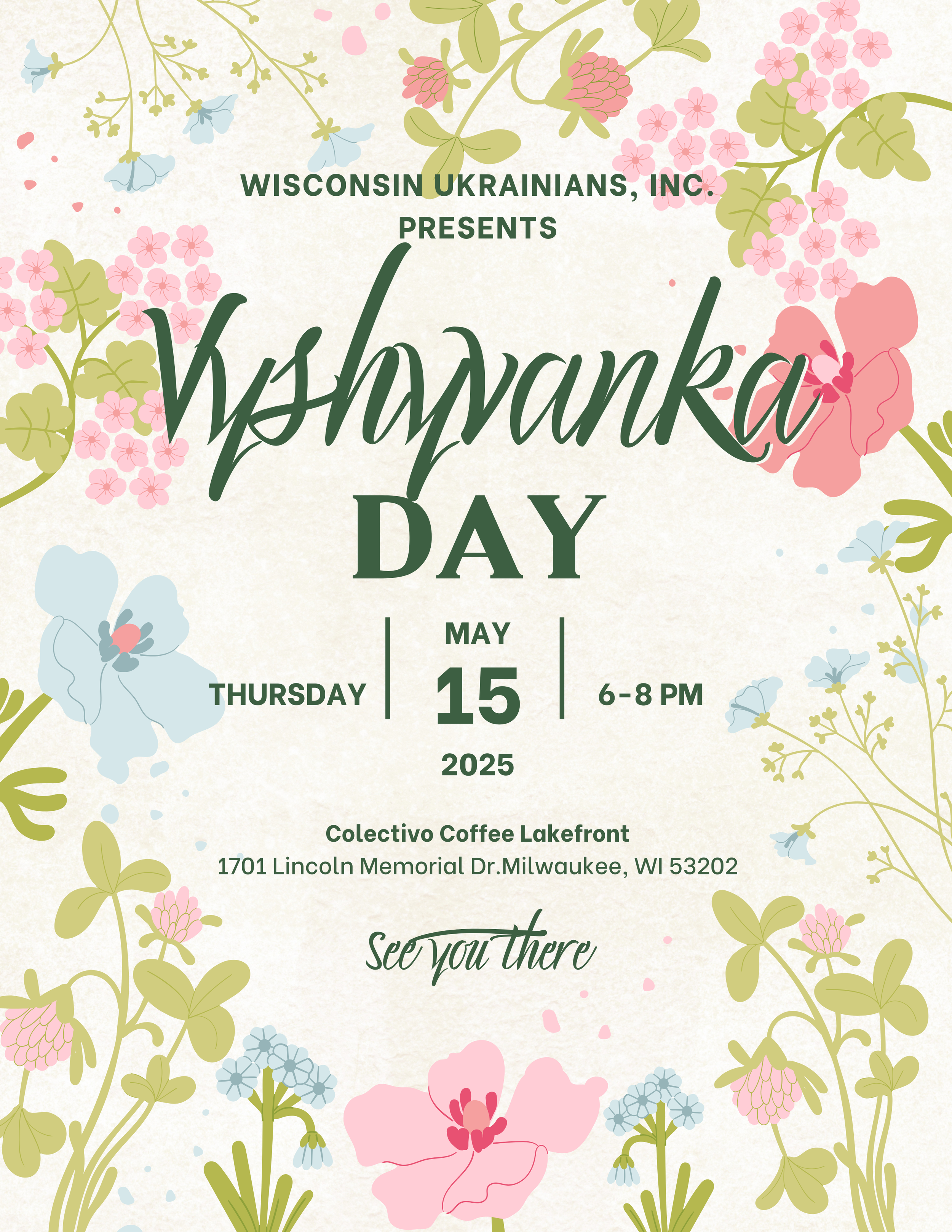 Celebrate the beauty of Ukrainian culture and tradition! Join us for Vyshyvanka Day—a special evening to wear your embroidered pride and connect with others over a warm cup of coffee or tea. Whether you have a cherished family heirloom or a modern twist on the traditional shirt, come show off your vyshyvanka, share stories, take photos, and enjoy good company.